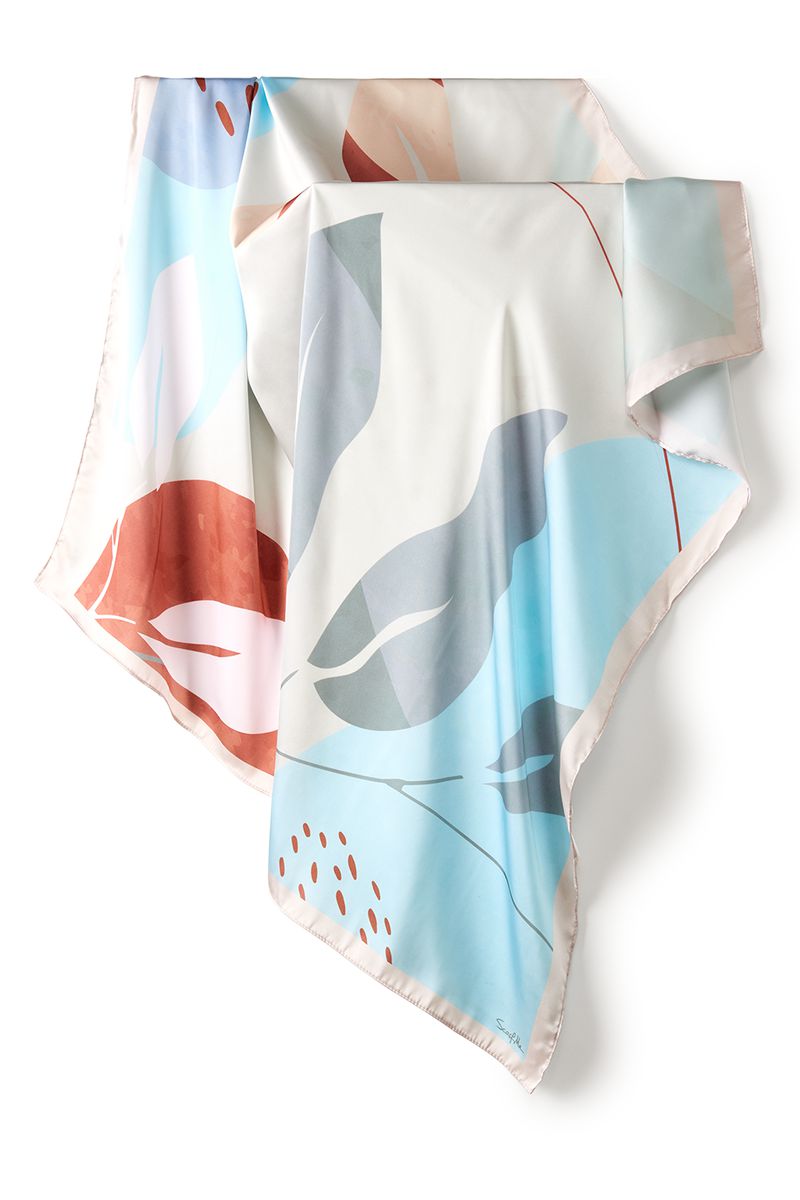 O lenço em cetim de poliéster tem toque acetinado e um leve brilho.
